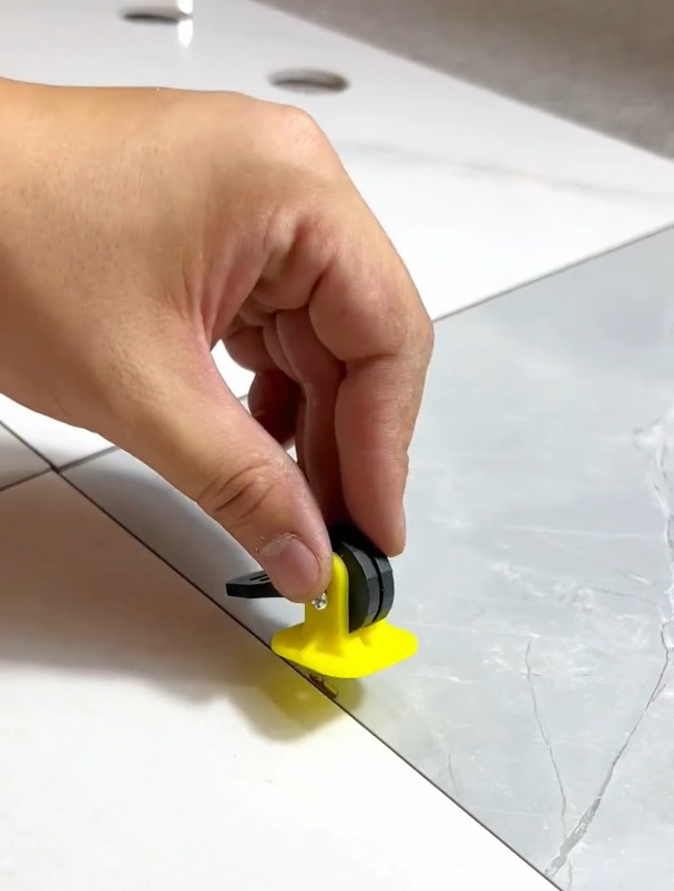 10、瓷砖找平器使用较为简单,将两块瓷砖间距控制在2毫米内,往缝隙内插入T型找平器然后用扳手旋转90度,使找平器位于砖底接着扳紧调节盖,让两瓷砖处于水平线上最后5小时后,待水泥干固前,再次旋转调节盖,取出找平器即可想要墙砖牢固,贴墙砖的时候需要注意什么 装修房子的时候都是会贴瓷砖的。
